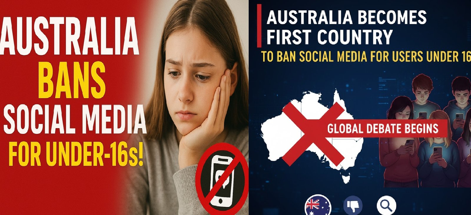 Australia Becomes First Country to Ban Social Media for Users Under 16: Australia has officially banned social-media access for children under 16, becoming the first nation to take this bold step. Here’s what the new law means globally.