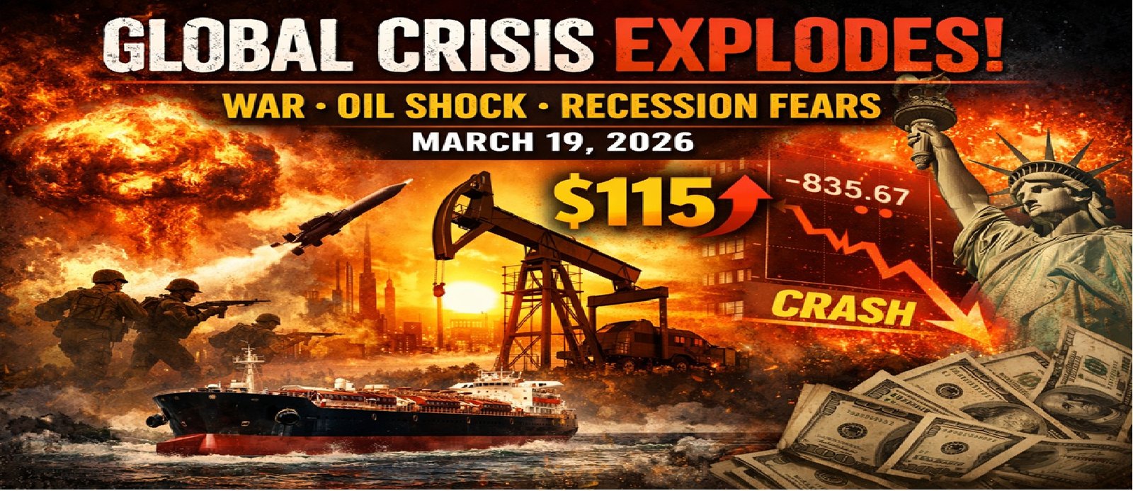 World on Edge: The world faces a massive crisis on March 19, 2026, as the Iran-Israel war triggers a global energy shock, oil prices surge above $115, markets fall, and recession fears grow. Get the latest updates on world politics, economy, and business in this detailed report.