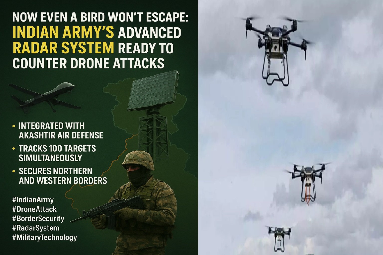 Now Even a Bird Won’t Escape: Indian Army to deploy advanced radar systems on northern and western borders to counter rising drone attacks from Pakistan. Integrated with Akashtir Air Defense, the system can track 100 targets simultaneously and secure the skies.