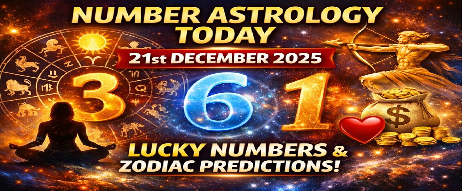 LUCKY NUMBERS TODAY- Sunday, 21st December 2025: Discover today’s number astrology predictions for Sunday, 21 December 2025. Lucky numbers, energy vibrations, career, love, and finance insights for all 12 zodiac signs.
