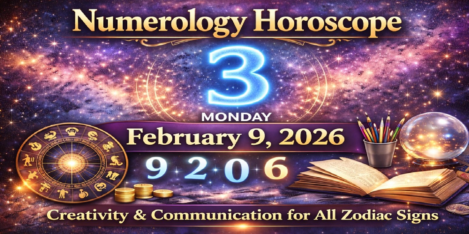 Read the numerology horoscope for Monday – February 9, 2026. Discover how Number 3 influences love, career, money, and emotions for all zodiac signs today.